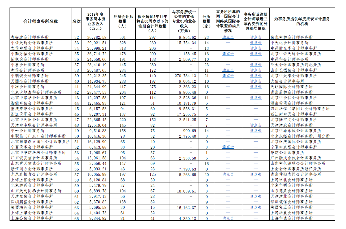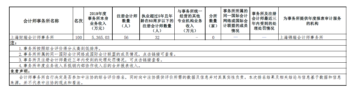 中国注册会计师协会发布《2019年度综合评价前100家会计师事务所信息》